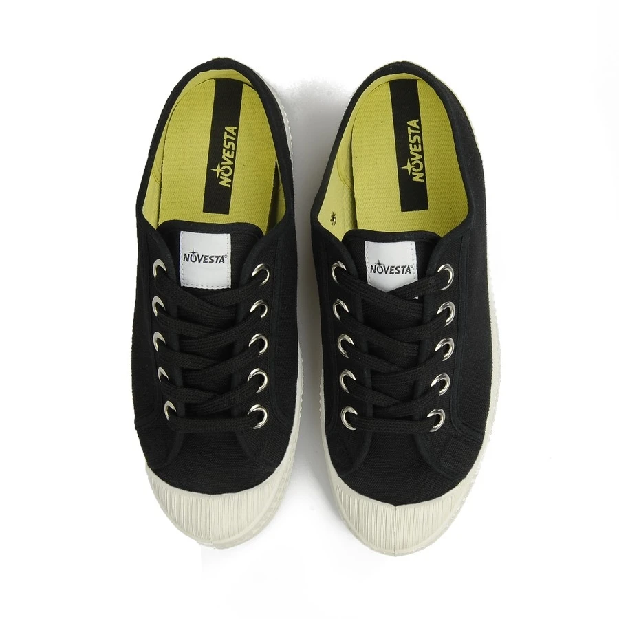 Novesta’s star master model is a classic canvas sneaker. Completely glue-free. Sole vulcanized directly on the canvas. Contains only three materials – cotton, rye rubber and metal. Two pairs of laces are included, a pair of tonics and a pair of contrasting whites. Made by hand in Slovakia.