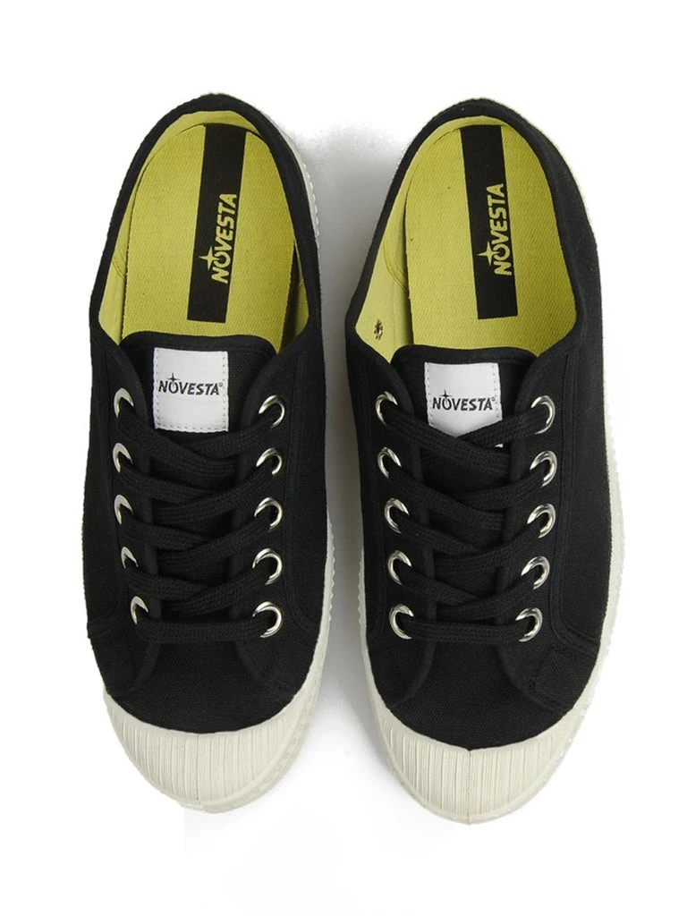 A true classic and the signature style of Slovakian brand Novesta, Star Master shoes are distinguished by a chunky rubber sole with vulcanisation marks that guarantee a great performance. Every pair is handmade from natural rubber and 100% cotton canvas. This easily identified silhouette is a descendant of the true Slovakian people’s shoe. Wear with a brightly coloured sock and turn-up trousers to nail your laid back look. Canvas Uppers – 100% Cotton Woven Brand Patch Vulcanised Outsole Tonal sole and upper