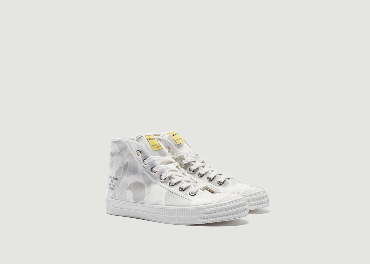 Cotton high top sneakers from the collaboration between Novesta and Universal works • Ecru color • Camouflage pattern • Thick rubber sole • Flat cotton laces • Rubber reinforcement on the toes
