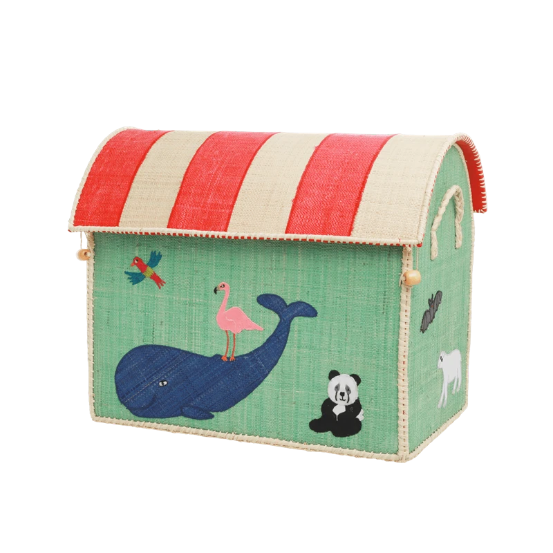 Rice by Rice Cesto Giochi In Rafia Animali Medio – Eco-Friendly Kids Toy Basket