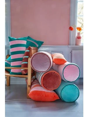 Medium size beautiful bolster pillow in velour with contrast color piping. This pillow will for sure decorate in your living room or on the terrace! The pillow measures L60 x Dia25 cm.