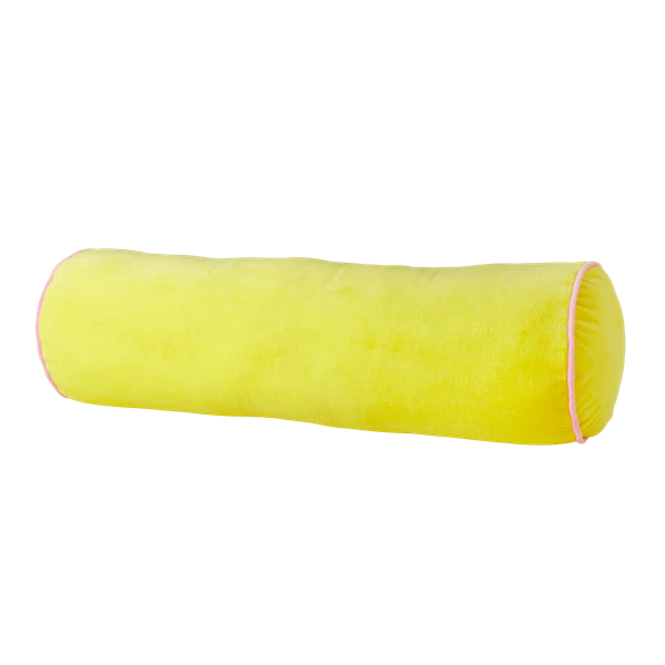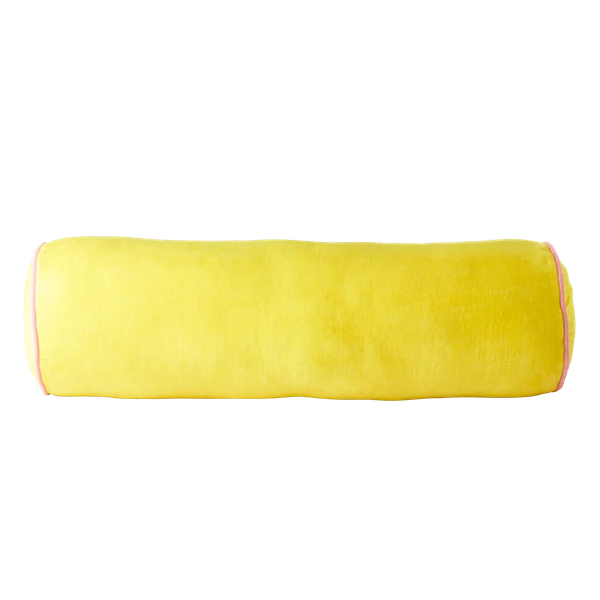 - Elevate your home decor with the Rice by Rice Soft Velvet Bolster Pillow, featuring a luxurious yellow velvet finish and stylish pink piping for a chic, modern look.