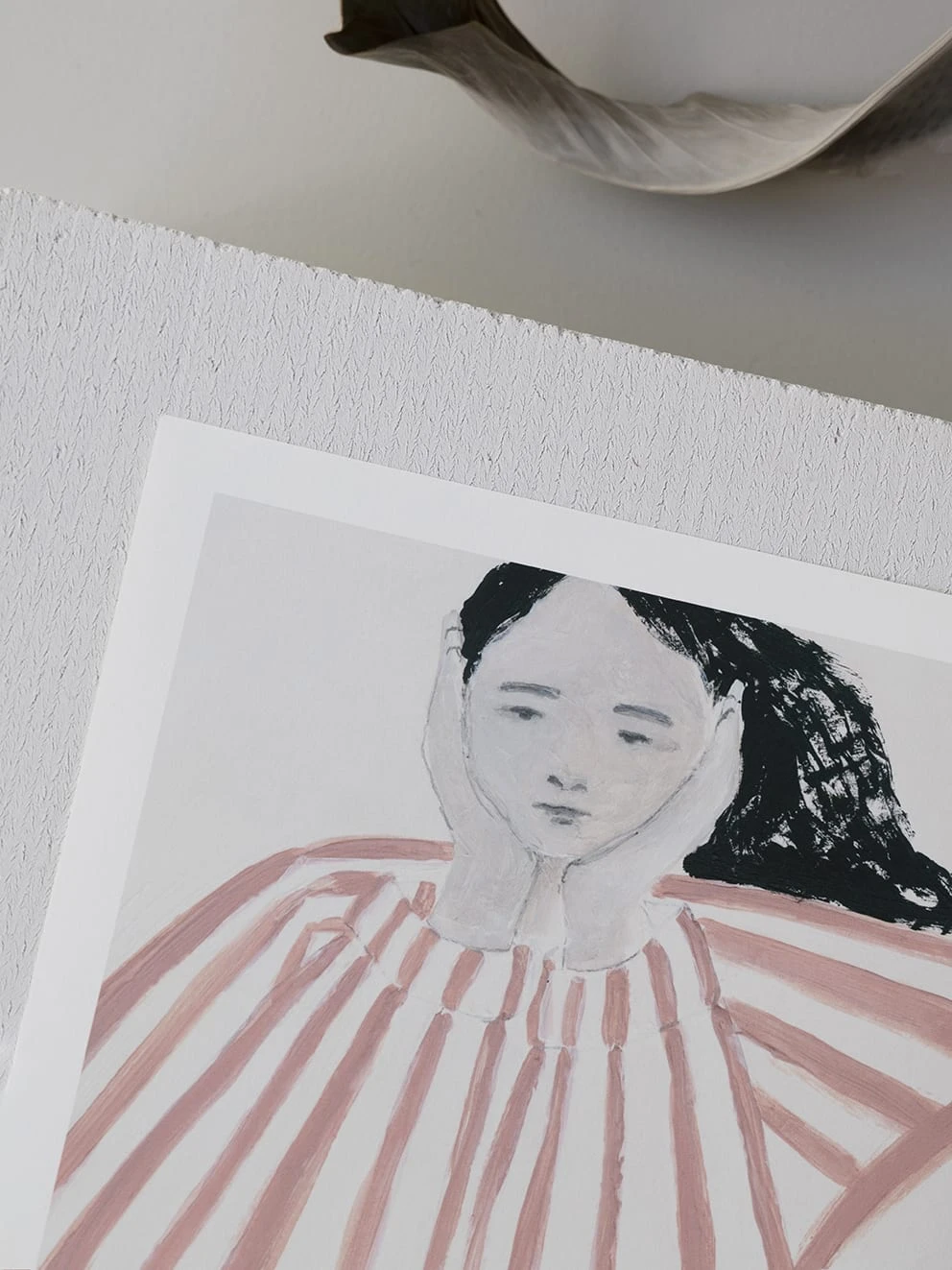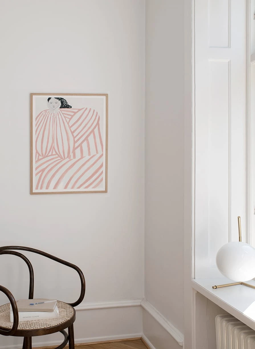 Wall art prints are the perfect way to elevate the look of any scheme. The Artist Sofia Lind has captured a character with a calming and soft feel, the mix of neutral palette and careful brushstrokes make for a balanced image that would enhance your interior.