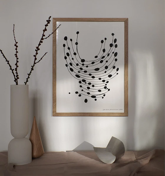 - Add a modern and artistic touch to your home with The Poster Club’s Leise Dich Abrahamsen Dancing Dots Print. This abstract wall art piece is perfect for contemporary interiors.